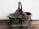 1900年代 アンティーク 薔薇の花かご カルトナージュボックス 青い薔薇&薄紫色の花