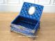 アンティーク ガラスの蓋の紙箱 ビーズ入り ブルー