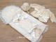 アンティーク ベビー用おくるみ&ボネ&上着のセット 花模様のレース&シルクリボン