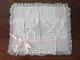 アンティーク ピンクのシルクリボンが結ばれた ベビーベッドカバー フィレレース & カットワークレース