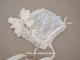 アンティーク バテム用 レースのボネ パウダーピンクのシルクリボン