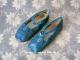 【10周年セール対象外】 19世紀末 アンティーク 淡いブルーのシルク製ポンポン付 子供用 レザーシューズ