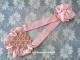 アンティーク 初聖体のオモニエール パウダーピンク クロス&聖母マリアのイニシャル刺繍 タティングレースの縁取り