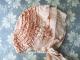 1920年代 アンティーク ボネ ベビーピンクのフリルリボン & ロココトリム ナイトキャップ