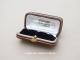 アンティーク 本革製 ジュエリーケース スモーキーブルーのシルク製クッション