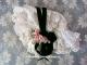 アンティーク ドール用 布花&リボン付 レースのボネ