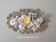 1920年代 アンティーク ロココモチーフ&ベルベットの布花のアップリケ ピンク&ブルー&ピスタチオグリーン メタルレース