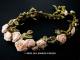 1920年代 アンティーク ロココモチーフ&布花のアップリケ イエロー&ピンク メタルレース