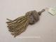 19世紀末 アンティーク シルク製 留め具 パウダーグリーン ポンポン パスマントリー