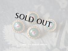 【アンティーク エナメル 極小 ボタン ドール用 7mm 薔薇 4点セット ハンドペイント グリーン & ゴールドレリーフ [AM5408]】