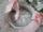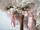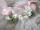 白い薔薇の布花と、ピンクのリボンが結ばれたロマンチックなデザインです。