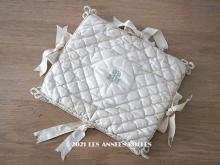 【アンティーク シルク製 ハンキーケース 水色のモノグラム刺繍入り エクリュ ハンカチ用ポシェット [AM11806]】