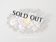 【 1920年代 アンティーク ロココモチーフ&布花のアップリケ イエロー&ピンク メタルレース[AM11934]】