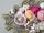 薔薇のロココモチーフとたくさんの布花が付いたメタルレースのアップリケです。