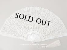 見事な彫刻入りのシェル製の骨組みにデュシェスレースが美しい大きなファンです。