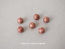 【19世紀末 アンティーク シルク製 くるみボタン 8mm 6ピースのセット ピンクブラウン[AM12094]】