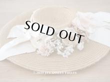 【19世紀末 アンティーク 大きなストローハット パウダーピンクの薔薇の布花&シルクリボン[AM12099]】