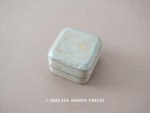 【1900年頃 アンティーク シルクサテンのリングボックス 金彩のイニシャル入り ジュエリーボックス パウダーブルー[AB3723]】