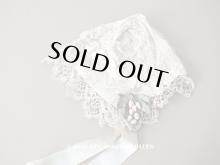 【アンティーク ベビー用 ボネ 手編みのレース&ベビーピンクのシルクリボン[AM12433]】