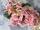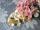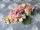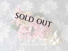 ベルベット製の淡い蜂蜜色の菫と、ピンク色の花のコサージュです。