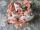 ベルベット製のライトシルバー&ピンクオレンジの花のコサージュです。