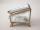 ごく淡いグレイッシュブルーのシルク製クッションが敷かれています。
