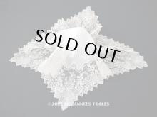 立体的な美しいモノグラム刺繍が施された、繊細で優雅なレースのハンカチです。