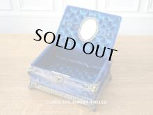 【19世紀末 アンティーク  裁縫箱 鍵付き マリンブルーのベルベット&シルククッション[AM12582]】