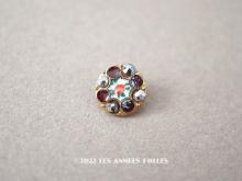 【19世紀末 アンティーク エナメルボタン 薔薇 ハンドペイント マーカサイト&グラスストーン 9mm[AM12615]】