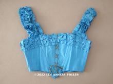 少しくすんだ美しいブルーのシルク地のコルセットで、