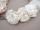 オフホワイト花びらが幾重にもなったふんわりとボリュームのある薔薇が並んでいます。