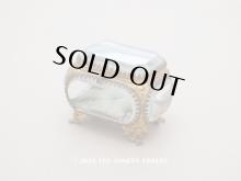 ロカイユ装飾の脚と厚みのあるガラスが印象的な小さなジュエリーボックスです。