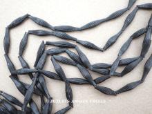 【アンティーク スフレビーズ ライン入り 黒 3.5×14mm 吹きガラス製ビーズ 約125〜175ピースのセット[AM12914]】