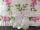 紫がかったピンクのグラデーションの花のガーランドと薄紫のリボンがロマンチックなデザインです。