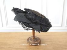 【19世紀 アンティーク 黒のシルクサテンのフリル付き 帽子[AM12634]】