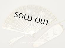 【19世紀 アンティーク リボン刺繍のファン リボン&花のガーランド柄 シルク製オリジナルバッグ入り[AM13044]】