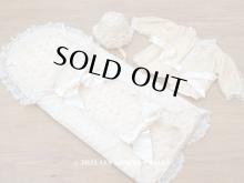 【アンティーク ベビー用おくるみ&ボネ&上着のセット 花模様のレース&シルクリボン[AM13112]】