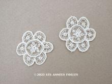 【アンティーク 手編みのレースの小さなモチーフ 2点セット 2.7~2.8cm[AM13184]】