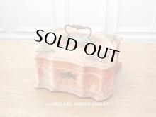 【19世紀末 アンティーク ジュエリーボックス 裁縫箱 スモーキーなサーモンピンク ベルベット&シルククッション[AB3827]】