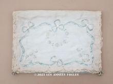 【アンティーク イニシャル刺繍入り シルク製 ハンキーケース パウダーブルー[AM13647]】