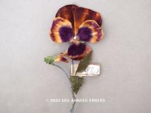 【1900年頃 未使用 アンティーク パンジーの布花 ラベル付 淡いオレンジ&深紫[AM13724]】