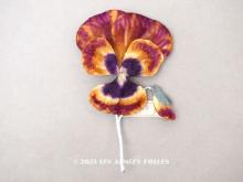 【1900年頃 未使用 アンティーク 大きなパンジーの布花 ラベル付 淡いオレンジ&深紫[AM13728]】