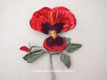 【1900年頃 未使用 アンティーク 大きなパンジーの布花 ラベル付 赤&ボルドー[AM13730]】