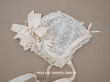 【アンティーク バテム用 レースのボネ パウダーピンクのシルクリボン[AM10792]】