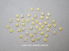 【19世紀 アンティーク メタル製 極小 4mm 花型 立体 スパンコール レモン色 44ピースのセット [AM13860]】