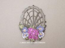 【未使用 1920年頃 アンティーク 薔薇のロココモチーフ付き メタルレースのモチーフ シルバー[AM10780]】