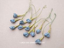 【19世紀末 アンティーク シルク製 ロココモチーフ 12点セット 未使用 スモーキーブルー[AM13672]】