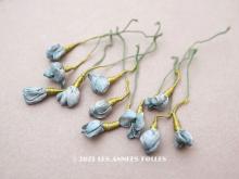 【19世紀末 アンティーク シルク製 ロココモチーフ 11点セット 未使用 スモーキーライトブルー[AM13673]】