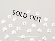 立体的な花型のメタル製、少しだけ紫がかった淡いピンクのスパンコールです。