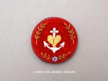深い赤のベルベットに百合の紋章&ハート&イカリの刺繍が施されたピンクッションです。